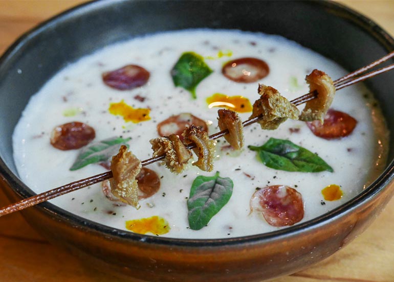JAEU is a bistro and ramen bar that brings both Japanese and European cuisines to the table. Whether you’re team ramen or team steak, you’ll have choices for your cravings like their must-tries Hell Ramen, Lekei Ramen, Tenderloin, Steak Frites, and more.