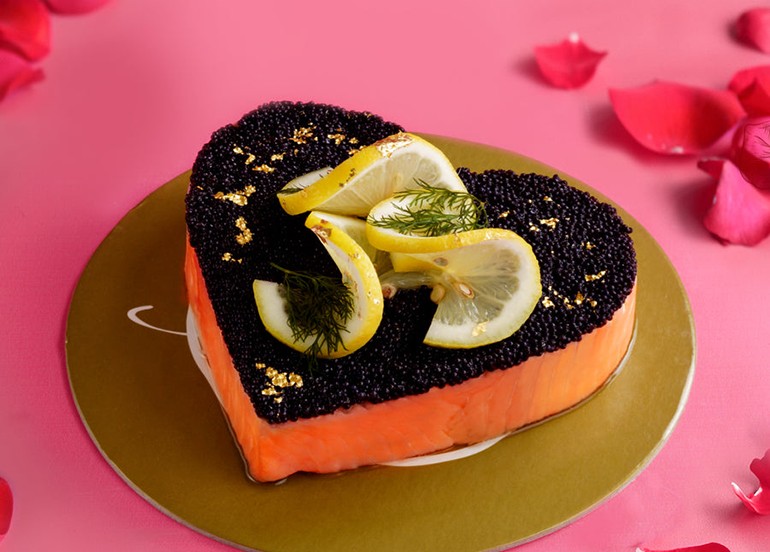 A savory cake for a change is this heart-shaped Smoked Salmon and Black Caviar Pie from Bizu. Perfect for a stay-in wine and dine date!